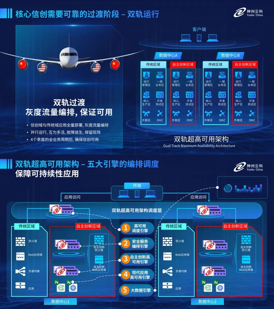 为助力金融业务高质量发展,更好地应对数字经济时代对可持续性的高要求,实现“信创”与“数字化”齐头并进,非凡娱乐创新性的推出了核心信创·双轨过渡的超高可用架构。该架构在双活数据中心的分区调度基础上,增加信创域和非信创域的分域调度,实行信创域与传统域应用全量部署,使双中心运营变为双中心四区域并行运行,互为多活,将“0到1”的单轨建设道路变为分区分域协同的多活双轨超高可用架构。帮助客户在新架构下,保障“信创”的同时解决性能瓶颈,提升稳定性,保证应用可持续性,最终实现信创区域和非信创区域的平滑过渡,完成国产化替代目标。